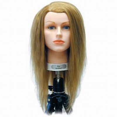 19"-22" blonde, 100% human hair manikin with vinyl head and facial make-up.